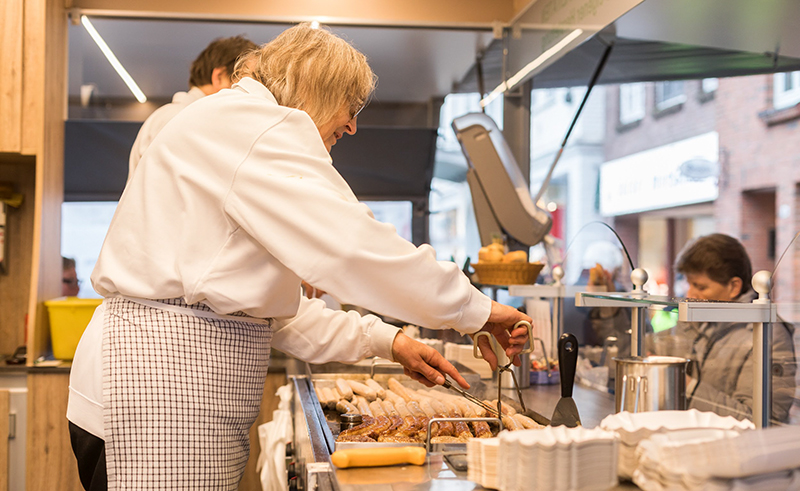 Mit unserem Imbisswagen fahren wir donnerstags den Husumer Wochenmarkt und samstags den Heider Wochenmarkt an. Dort bieten wir Ihnen aus unserer kleinen Landfleischerei frisch hergestellte Wurstwaren an. Diese können Sie selbstverständlich auch in unserer Gaststätte beziehen.